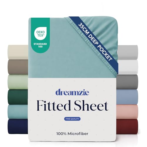 Dreamzie Lakan 200x200 Keps 35 cm för tjock madrass - 100% mikrofiber - Aqua, Certifierad utan kemiska produkter (Oeko TEX), Lakan med full resår