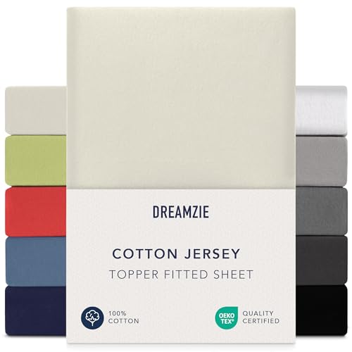 Dreamzie Lakan 180x200 cm - 200x200 cm, 100% ekologisk bomullströja, Madrasshöjd upp till 32 cm, Allergivänlig, Oeko-Tex, Beige