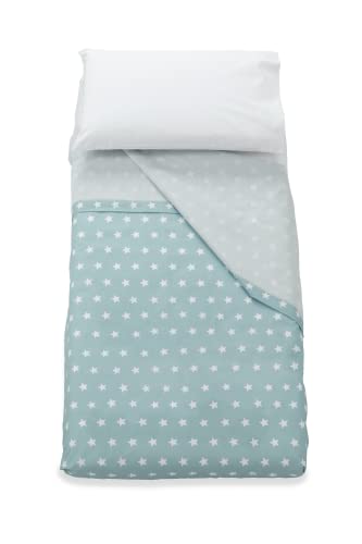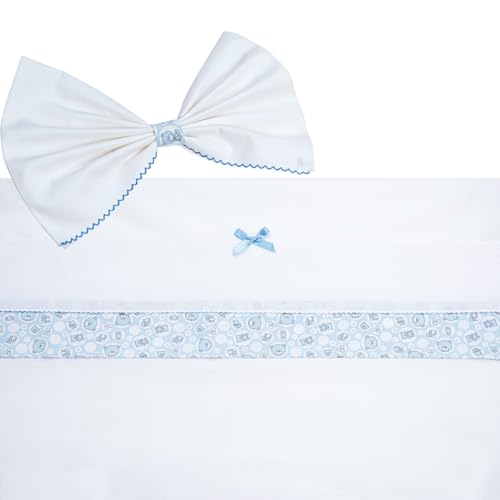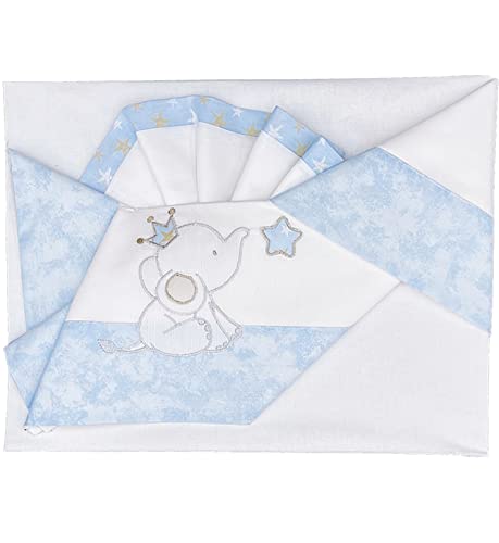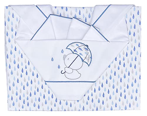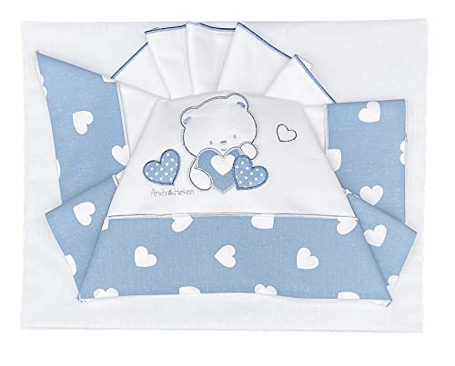 ANDY & HELEN Broderat lakan för spjälsäng/barnvagn underlakan med elastiska band och örngott, himmelsblå
