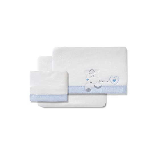 Filet 3-delat set för barnvagn, personligt lakan med canvasband för broderi + botten med elastiskt band + örngott, tillverkat i Italien, vitt och blått