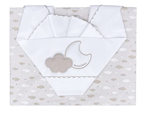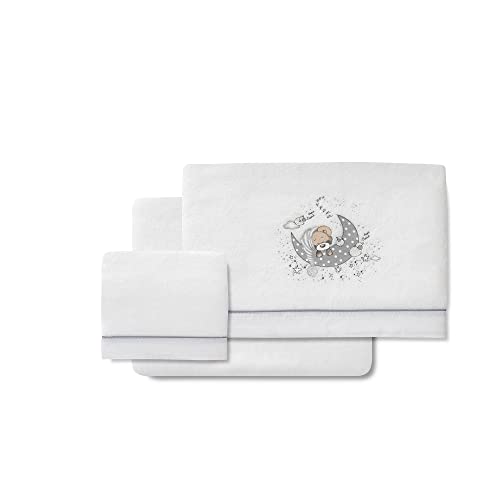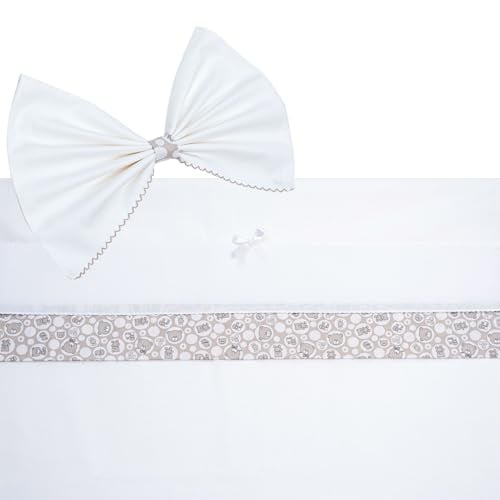 Filet 3-delat set för barnvagn, anpassningsbara lakan med canvasband för broderi + underdel med elastiska band + örngott, tillverkat i Italien, vit och gråbrun