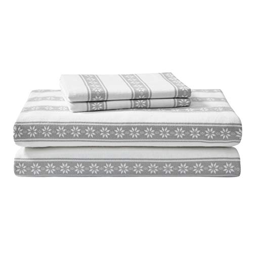 Eddie Bauer Sängkläder, dubbelsäng, lakan, varm ventilerande bomullsflanell, med djupa fickor, borstade för extra mjukhet, mysig heminredning, Oeko-Tex-certifierad (Snowflake Fair Isle, dubbelsäng)