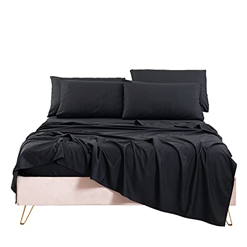 Bedlifes Queen lakanset – 6 st 100 % mikrofiber dubbelsäng lakan ultramjuka silkeslena och kylande lakan – 1800-serien skrynkelbeständigt djupt anpassat lakan + platt lakan + 4 örngott (svart drottning)