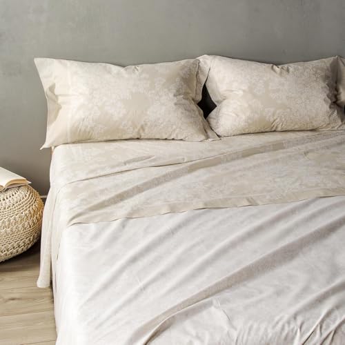 PENSIERI DELICATI Set med dubbelsäng 100% bomull, set med lakan för dubbelsäng 180 x 200 med underlakan, överlakan och 2 örngott, tillverkat i Italien, mönstrade gnamnen beige