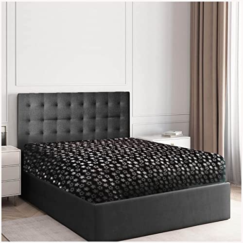GAVENO CAVAILIA Teddy fleece stjärnfolie dra-på-lakan dubbelsäng svart, supermjukt fluffigt mysigt varmt glänsande lakan, lyxig lättskött 25 cm djupt elastiskt band sängkläder
