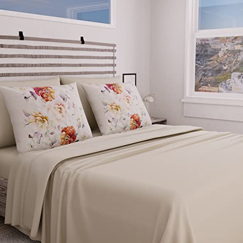 Clara Clark Queen lakanset, djupa fickor lakan för dubbelsäng – 4 delar lakan queen size, extra mjuka sängkläder och örngott, beige krämfärgade lakan drottning