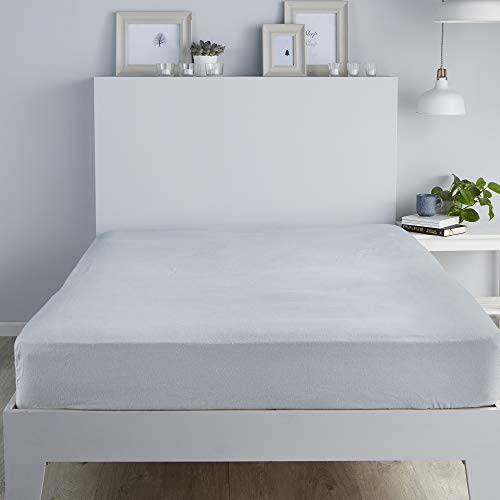 Fusion Silverborstad bomull dubbelsäng dra-på-lakan (140 x 190 x 28 cm) - Silver dubbelsäng lakan - mjukt och lyxigt 100% bomull - hotellsäng/anpassat lakan