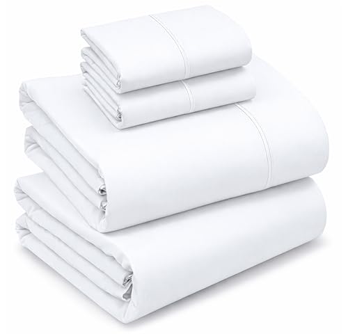 Ruvanti 100% bomullslakan – krispigt kylande percale-lakan för dubbelsäng säng, andningsbart och hållbart queen lakan, 4 cm djupa fickor, lysande vita, 4 delar