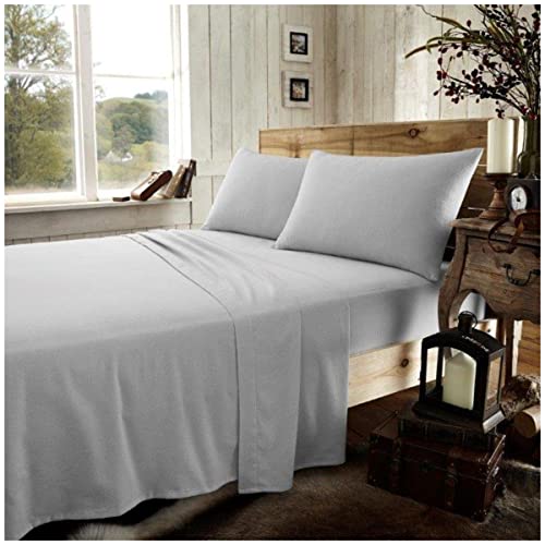 GC GAVENO CAVAILIA lättskött enfärgat flanellanpassat lakan, 100% borstad bomull lyxtillbehör, mjukt och mysigt sänglinne, grå, dubbelsäng lakan