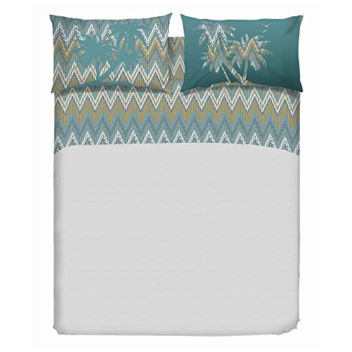 PENSIERI DELICATI Set med dubbelsäng 100% bomull, set med lakan för dubbelsäng 180 x 200 med underlakan, överlakan och 2 örngott, tillverkat i Italien, mönster palmgrön