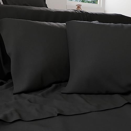 FreshCulture Queen dra-på-lakan endast - dra-på-lakan i hotellkvalitet dubbelsäng - ultramjukt och andningsbart - borstad mikrofiber - djup ficka - kylande dra-på-lakan för dubbelsäng (svart)