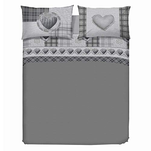 PENSIERI DELICATI Set med dubbelsäng 100% bomull, set med lakan för dubbelsäng 180 x 200 med underlakan, överst och 2 örngott, tillverkat i Italien, Fantasi Love Mountain grå