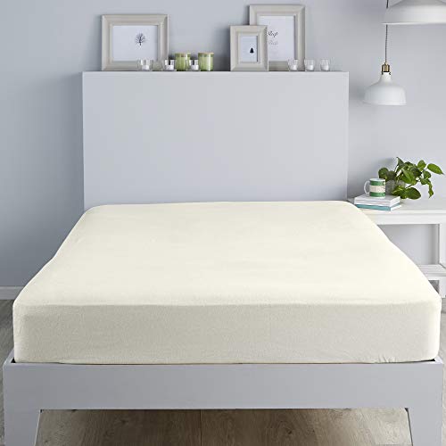 Meyco Home Basic Jersey Uni underlakan Dubbelsäng (lakan med mjuk jerseykvalitet, tillverkat av 100% bomull, perfekt passform tack vare elastisk dragsko runt om, mått: 140 x 200 cm), Varmvit
