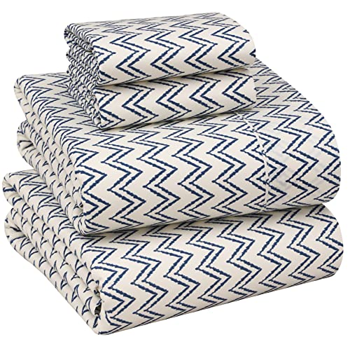 Ruvanti 100% bomullslakan – krispigt kylande percale-lakan för dubbelsäng säng, andningsbart och hållbart queen lakanset, 4 cm djupa fickor lakan, Chevron, 4 delar