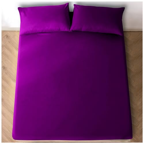 ComfyWell Dubbelt dra-på-lakan – djupa dra-på-lakan dubbelsäng (35 cm) – mjukt borstat mikrofibertyg lakan – krympnings- och blekningsbeständigt. (dubbel (135 x 190 cm), vinröd)
