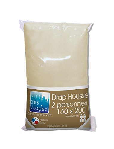 Nuit des Vosges, Cotoval lakan med elastiska hörn, enfärgad bomull, neutral, 160 x 200