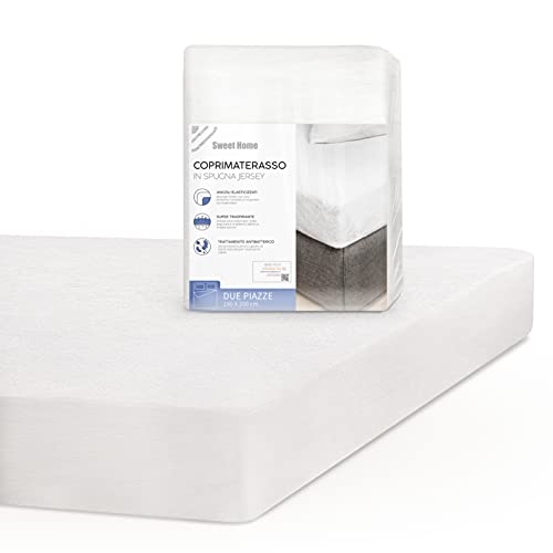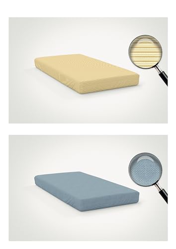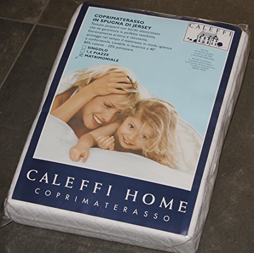 CALEFFI - Dubbelmadrassöverdrag 180 x 200% bomull och jersey, svalt mjukt andningsbart, lakan med hörn för dubbelsäng, under stretchtyg, tvättbart madrasskydd 40 °C med hörn 25 cm