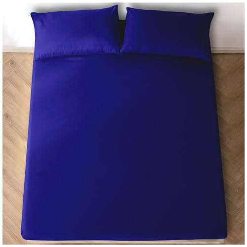 Påslakan för dubbelsäng 10 tum (25 cm) djup ficka |Polycotton sängkläder elastiska hörn lakan dubbel (135 x 190 cm) | tvättbart linne | kungsblått