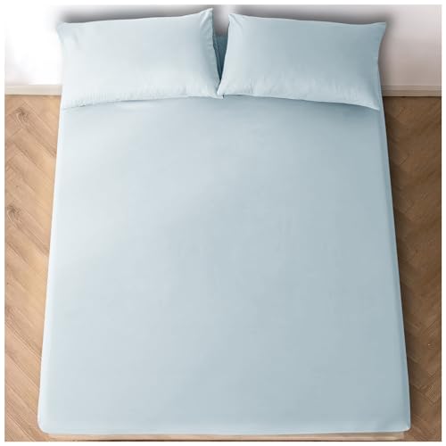 Påslakan för dubbelsäng 10 tum (25 cm) djup ficka |Polycotton sängkläder elastiska hörn lakan dubbel (135 x 190 cm) | tvättbart linne | himmelsblått