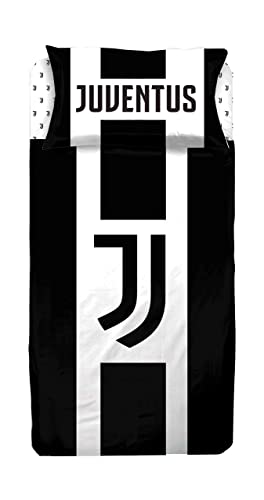 hermet Juventus FC Lakan för enkelsäng, set med lakan 1 kvadrat, vit svart överlakan, lakan med hörn, örngott, 100% ren bomull, officiell produkt