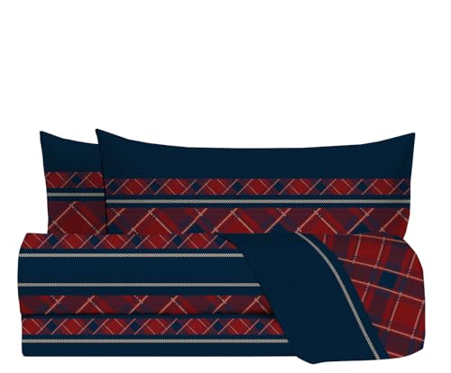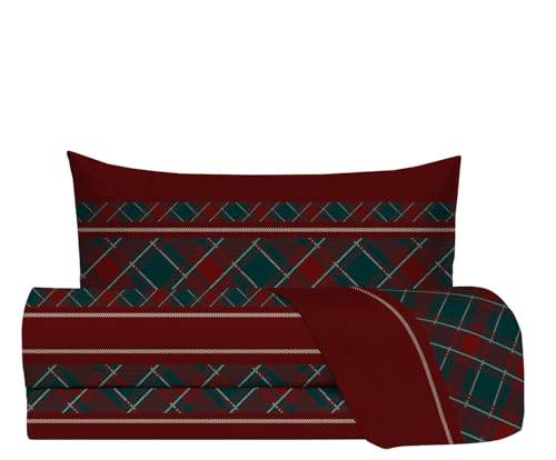 zer0bed, Tartan enkelsängslakan, komplett med en fyrkantig säng, tillverkad i Italien, 100% bomull, vinröd, överlakan, lakan med hörn, örngott