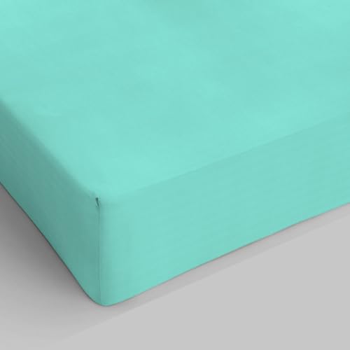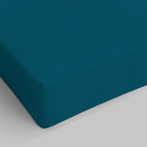 Dra-på-lakan enkel djup teal – polybomull elastiskt hörn lakan – 25 cm djupa fickor nedre säng monterad (90 x 190 cm) – maskintvättbar