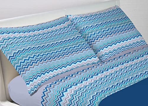 BIANCHERIA WEB Full dubbelsäng Maxi sängkläder 140 x 200 cm +25 cm Elastiska hörn, lakan på toppen 200 x 300 cm 2 örngott Knappar 50 x 80cm, 100% Bomull, Made in Italy Fantasia Bay Azzurro