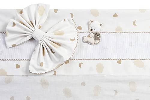 FILET - 3-delat barnvagnsset i Tortora-mönster bestående av 1 lakan nedan med hörn, 1 lakan på toppen med Aida kanfasband för broderi, 1 st och 1 örngott, 100% bomull, tillverkad i Italien