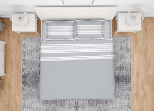 BIANCHERIAWEB Enkelsäng Set sänglinne 90 x 200 cm +25 cm Elastiska hörn, lakan över 150 x 300 cm, 1 örngott för sidoknappar 50 x 80 cm, 100% bomull Tillverkad i Italien, randig grå