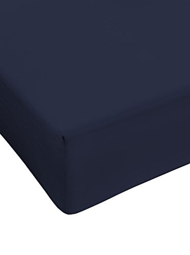 Dra-på-lakan med hörn i 100% bomull för 1 och en halv säng, midnattsblå