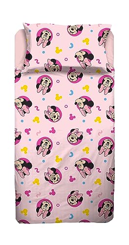 Minnie Lakan för enkelsäng, set för enkelsäng, överlakan, dra-på-lakan med hörn, örngott, rosa, Disney, 100% bomull, officiell produkt