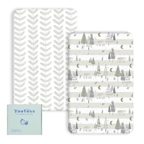 Yoofoss Lakan för spjälsäng, 140 x 70 cm, anpassade, supermjuka och andningsbara spjälsängslakan mysiga barnsängslakan 2-pack grå skog