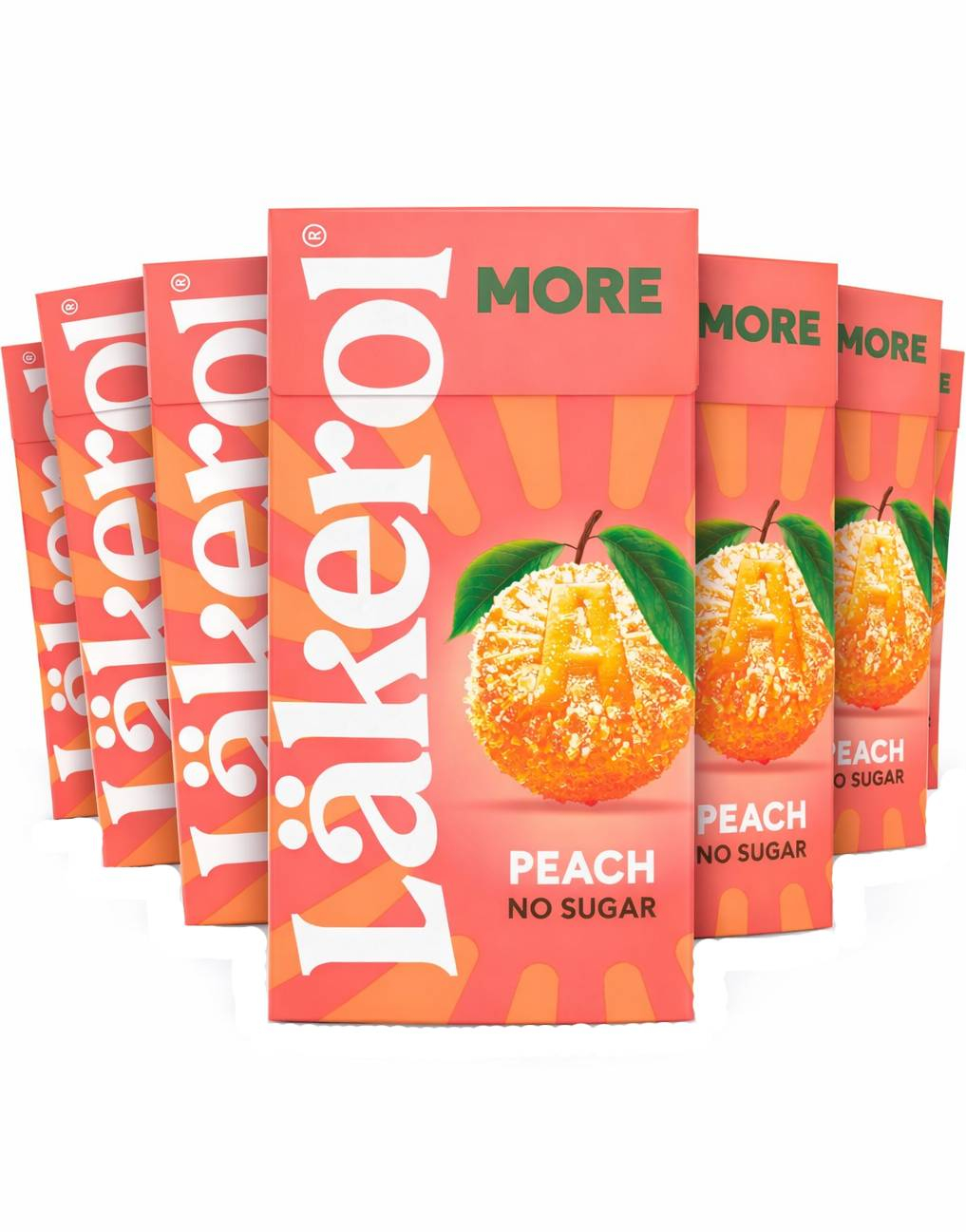 16 st Läkerol More Peach No Sugar - Sockerfria Pastiller med Persikosmak - Helt Paket 480 gram
