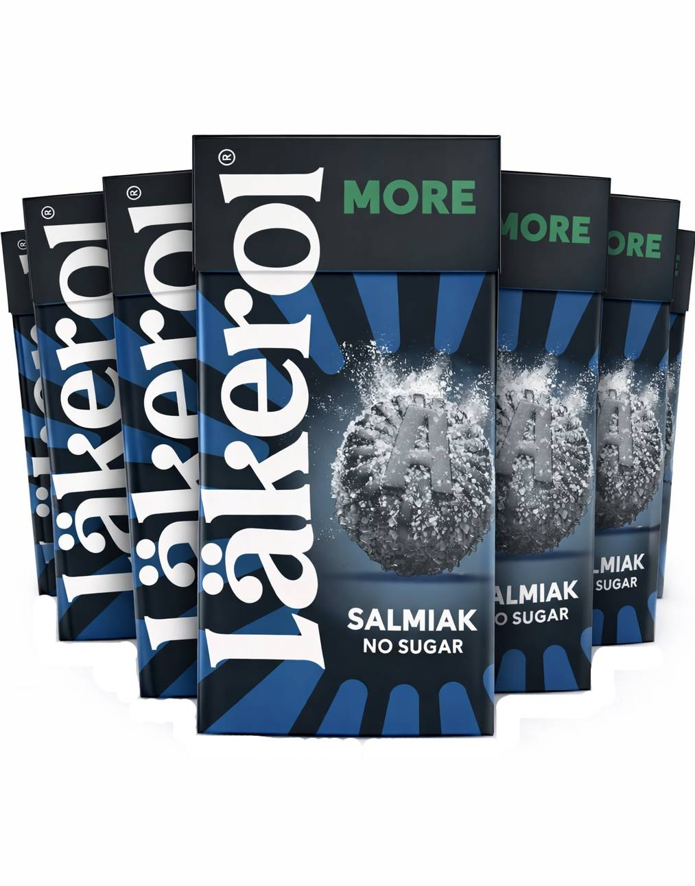 16 st Läkerol More Salmiak No Sugar - Sockerfria Pastiller Med Salmiakksmak - Hel Låda 480 Gram