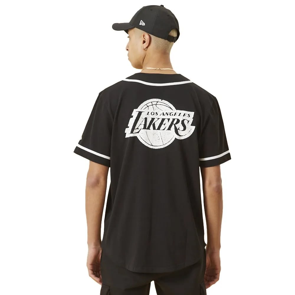 New Era Distressed Logo Button Up Los Angeles Lakers Short Sleeve T-shirt Svart L Man