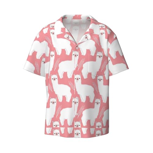 Alpacka lama tryck klassisk kortärmad button down casual skjorta håll dig sval avslappnad sommaraktiviteter, Svart, XXL