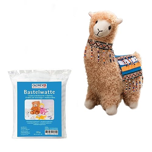 Glorex 04811-1K – komplett set gosedjur för självhäftande plugg, lama, beige, ca 23 cm, inkl. 100 g bomull, för pyssel och gosa