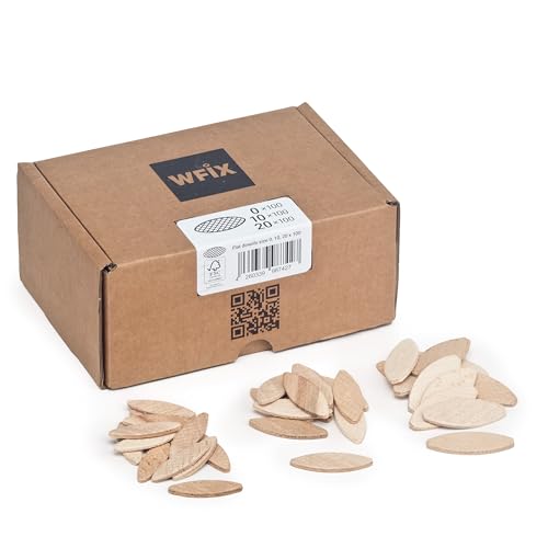Platta pluggar från WFix | Storlek 0/10/20 vardera 200 st. | pluggar av massiv bok | Kompatibel med pluggfräs och lamellfräs | Träpluggar som lamello