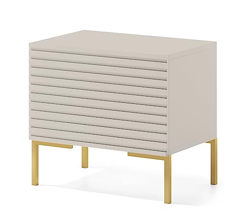 Selsey Sängbord med lamellskåp på gyllene ben 46 x 44 cm nattduksbord beige grå lamelo