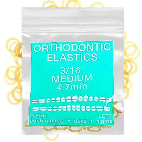 100 st ortodontiska elastiska band av bärnstensfärgad latex, ortodontiska elastiska band tillverkade i USA, M, 9,6 cm, bärnstensfärgad latex