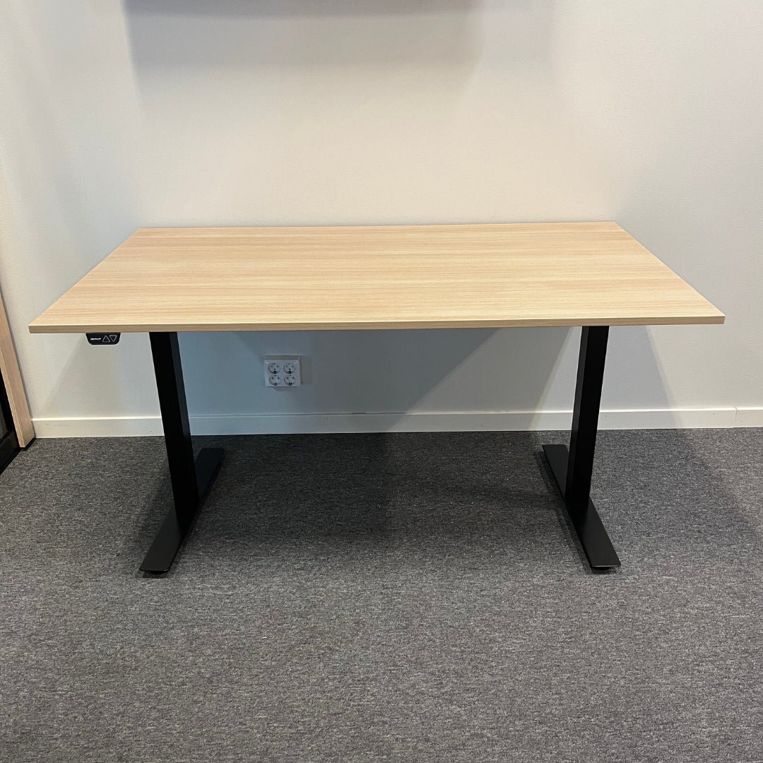 Beltton Höj- och Sänkbart Skrivbord 140x80cm Färg på stativ: Svart - bordsskiva: Ek laminatskiva