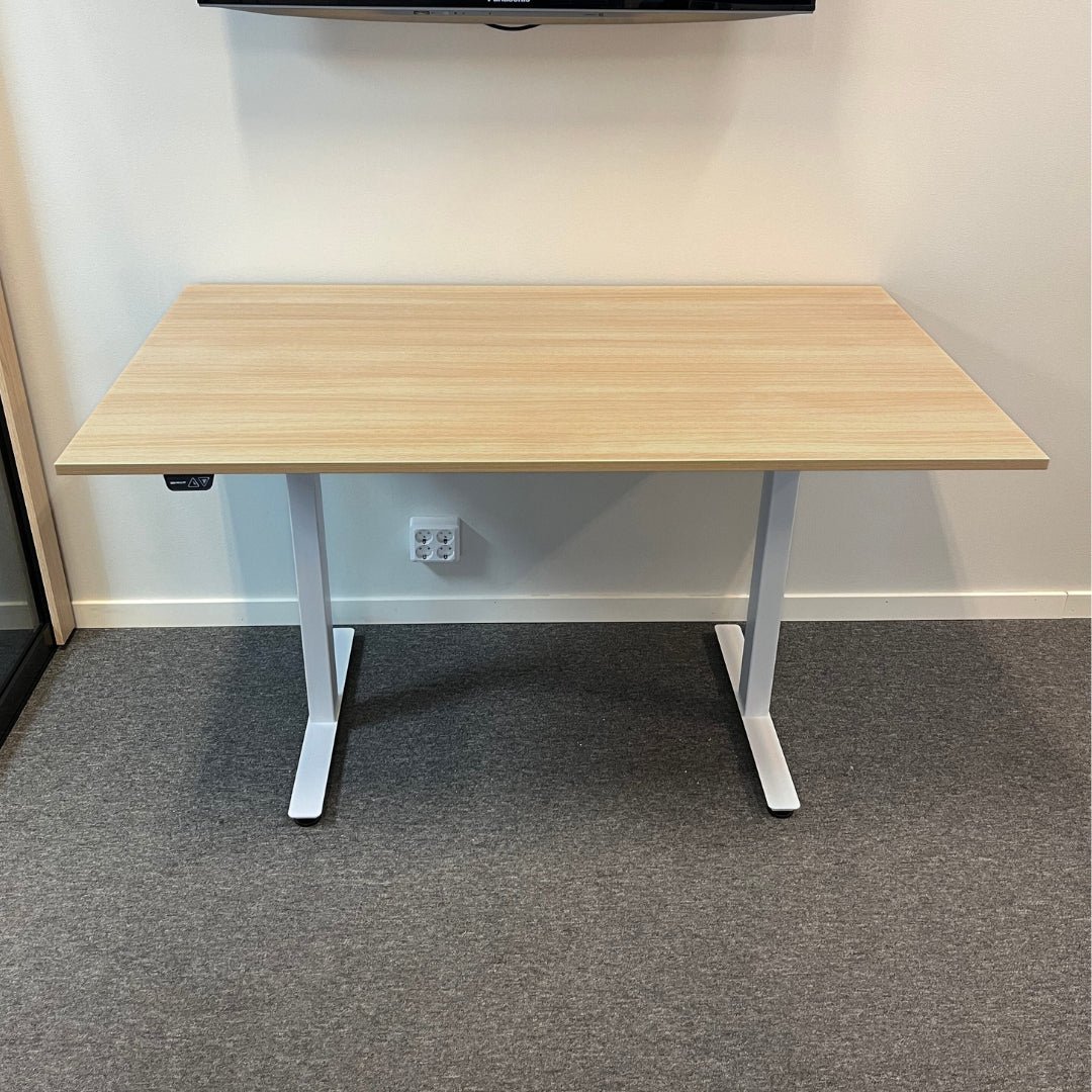 Beltton Höj- och Sänkbart Skrivbord 140x80cm Färg på stativ: Vit - bordsskiva: Ek laminatskiva