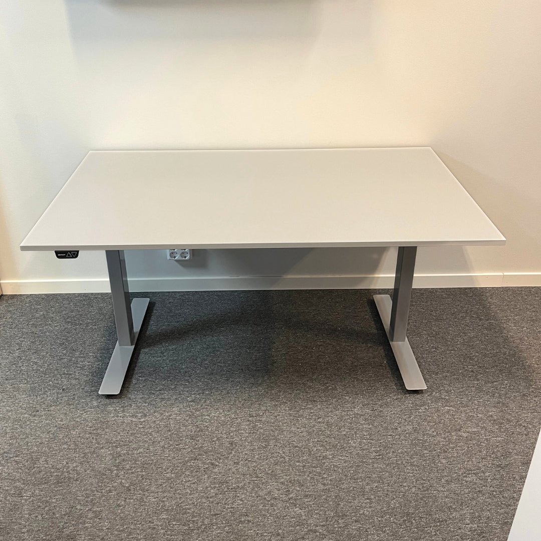 Beltton Höj- och Sänkbart Skrivbord 140x80cm Ljusgrå laminatskiva RAL 7047 Färg på stativ: Vit - bordsskiva: