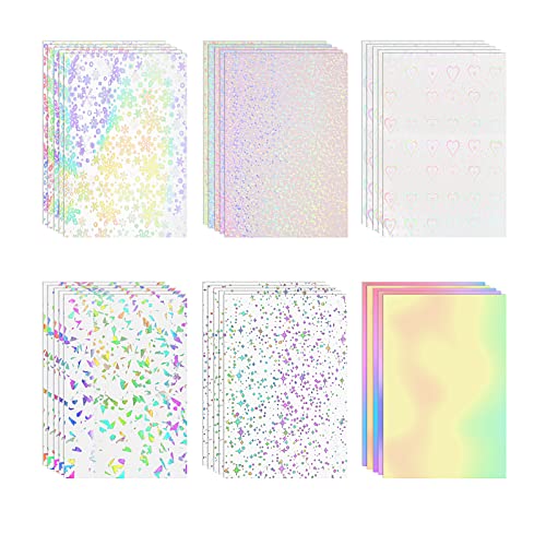 Gearific 30 ark transparent holografiskt överliggande laminering glitter vinyl klistermärke papper A4 storlek självhäftande permanenta vinylark (6 mönster)