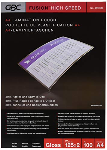 GBC HighSpeed lamineringsfolier A4 125 mic, för upp till 30% snabbare laminering, robusta lamineringsväskor i 100-pack, glänsande, transparent, 3747348