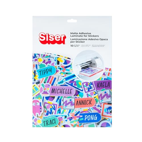 Siser Självhäftande film, matt lamineringsfilm, A4, självhäftande folie (10 ark) – anti-avskalning och vattentät, hög vidhäftning, ingen laminering, perfekt för klistermärken, klippbok