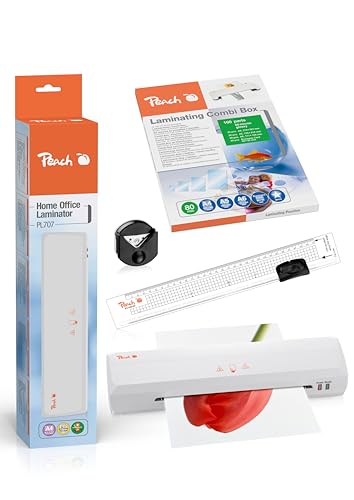 Peach 3-i-1 lamineringsset inklusive laminering, rullskärare, linjal och folie – för hem och kontor – lämplig för alla vanliga filmer i alla storlekar upp till max. A4 - PBP105