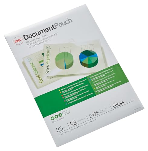 GBC Lamineringsfickor, A3, Glansiga, 2 x 75 Mikron, 25-Pack, 3740486