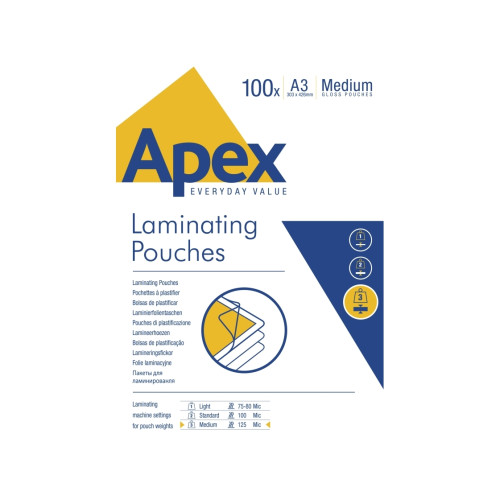 Lamineringsfickor Apex A3 (297 X 420 Mm) 125 Mikron - (100 St.)