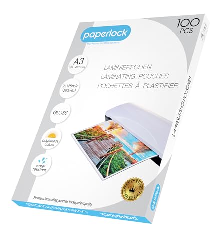 Paperlock Förpackning med 100 A3-lamineringsfickor, 2 x 125 mic, transparent glansig finish, förpackningen kan variera
